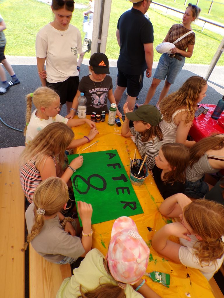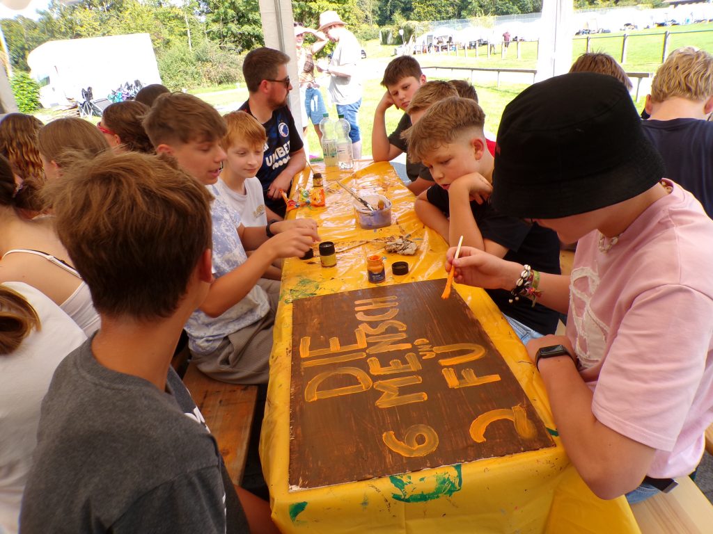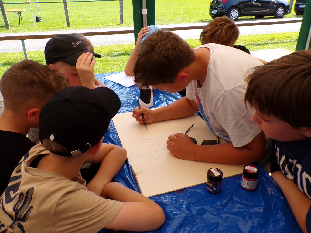 Am Nachmittag wurde es kreativ: In ihren Zeltgruppen dachten sich die Kinder eigene Teamnamen aus und bastelten liebevoll gestaltete Schilder für ihre Zelte – echte Hingucker! Die ersten Lagerfreundschaften wurden auch schon geschlossen.