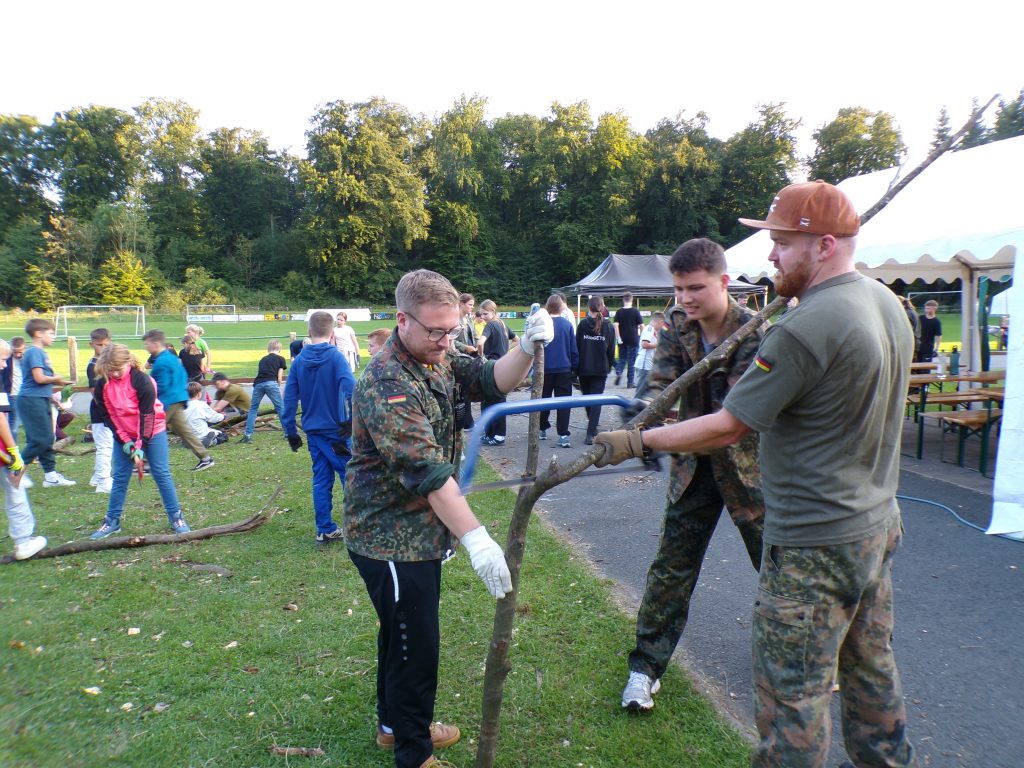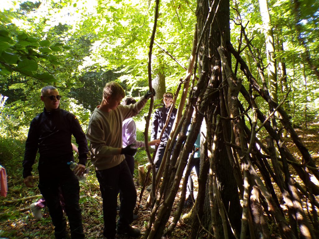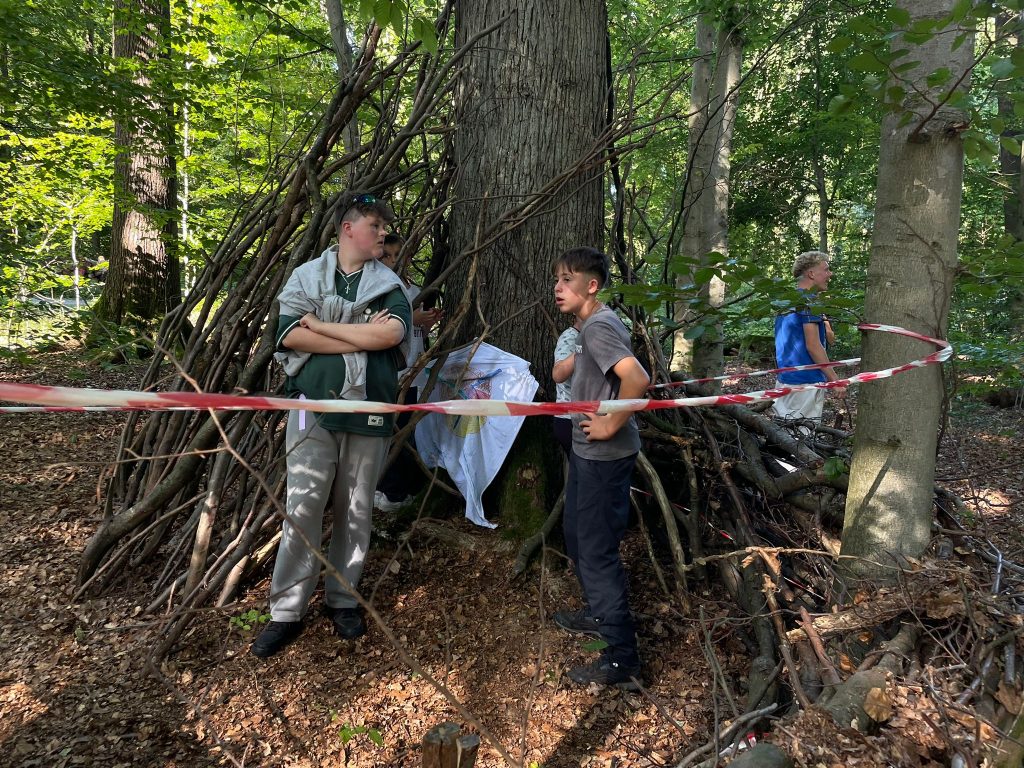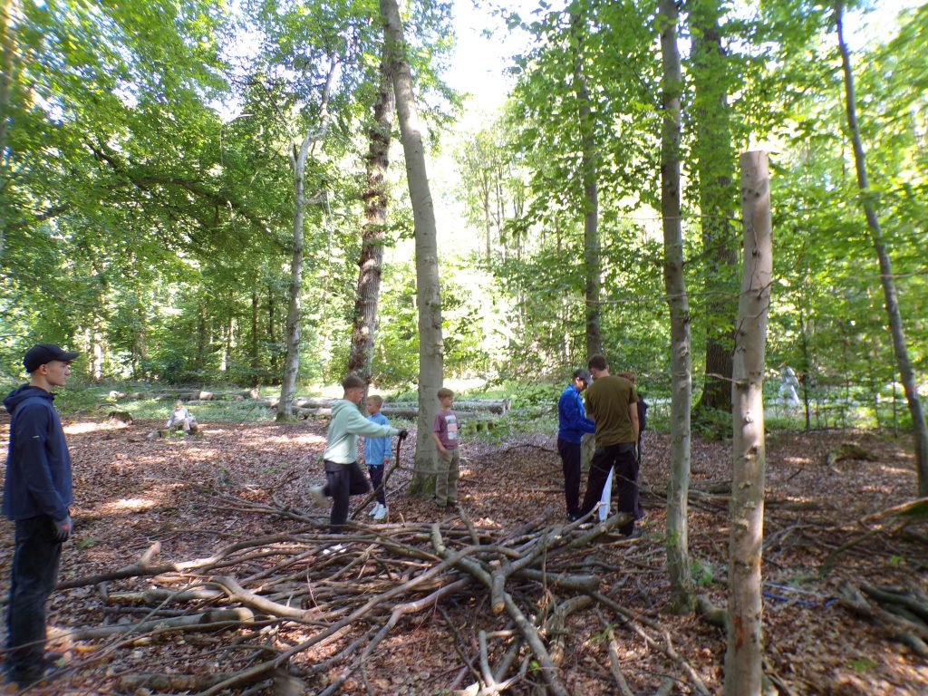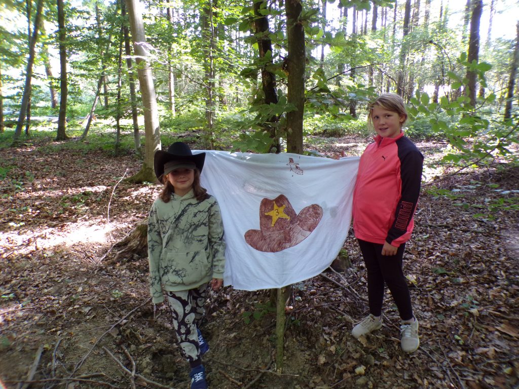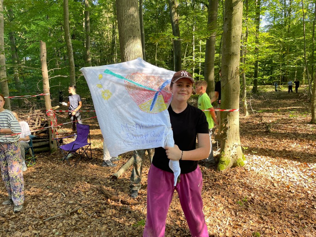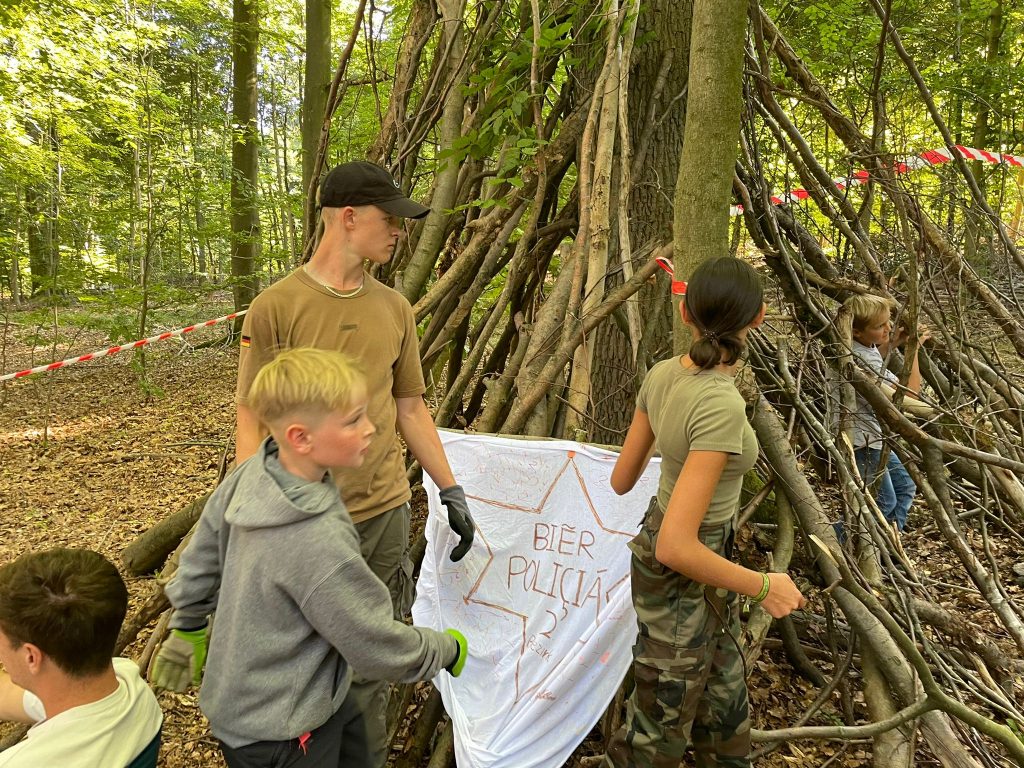 Am Vormittag wurden im Wald in kleinen Gruppen Shelter gebaut und dazu individuelle Flaggen gestaltet, die nicht nur stolz präsentiert, sondern auch später heiß umkämpft wurden.