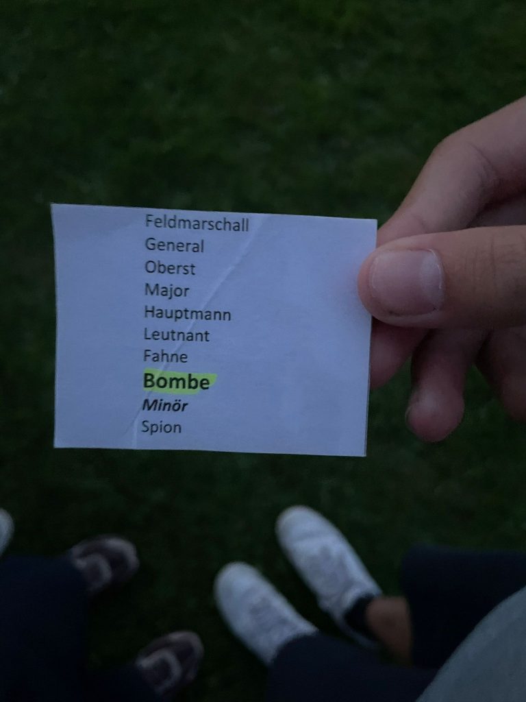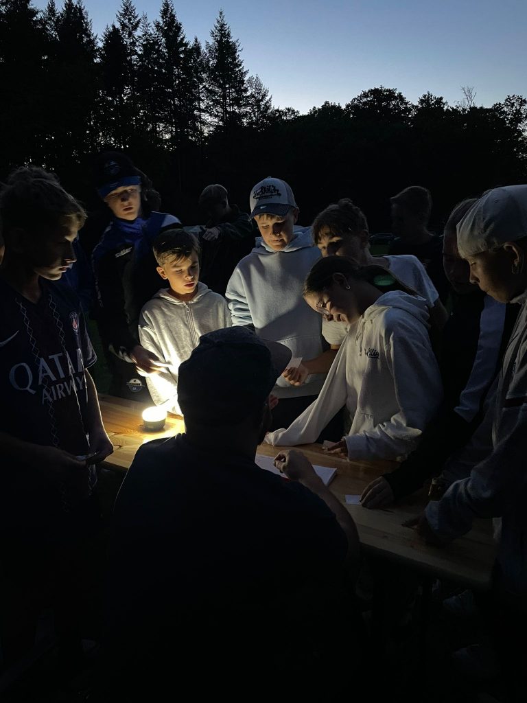 Abends ging das Abenteuer weiter mit „Stratego“, ein Strategiespiel im Westerndesign. Die Kinder schlüpften in verschiedene Rollen: Vom Feldmarschall bis zur Bombe, jede Figur hatte ihre eigene Stärke und Aufgabe. Ziel war es, die gegnerische Fahne zu finden, ganz ohne entdeckt zu werden. Mit viel Taktik, Zusammenarbeit und Spaß endete der Tag unter dem Abendhimmel.